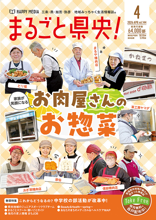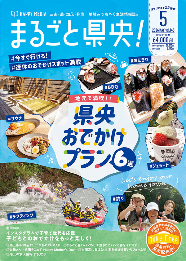◎三条市役所 ◎燕市役所 ◎加茂市役所 ◎三条市立図書館 ◎燕市立図書館 ◎加茂市立図書館 ◎燕市産業史料館 ◎加茂市文化会館 ◎新潟経営大学 ◎知遊堂三条店 ◎ジオ・ワールドVIP ◎マツモトキヨシ燕店 ◎イオンシネマ県央 ◎アクアホテル燕三条駅前店 ◎コンフォートホテル燕三条 ◎ホテルニューグリーン燕三条 ◎ホテルルートイン燕三条駅前店 ◎アパホテル燕三条駅前 ◎カラオケ本舗まねきねこ(三条本町店/燕三条店)◎コメリ書房(三条店/加茂店)◎ウエスト三条店 ◎マルイ(三条月岡店/分水店/吉田店/燕小池店/大崎店/今町国道店/寺泊店)◎リオンドール(燕北店/加茂店/下田店)◎ビジョンよしだ ◎こどもの森 ◎良食生活館(分水パコ内)◎ウオエイ(小中川店)◎ごまどう湯っ多里館 ◎弥彦観光案内所 ◎道の駅SORAIRO国上 ◎くるみの木 ◎いい湯らてい ◎すまいるランド ◎かんきょう庵 ◎イオン県央店 ◎ただいまーと ◎農産物直売所やひこ ◎さくらの湯 ◎道の駅たがみ ◎越後みそ西弥彦笹屋店 他(順不同・敬称略)